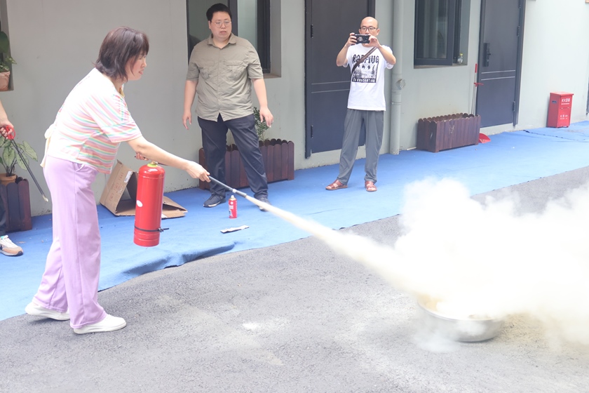 隨著一陣急促的警報(bào)聲,2023年度公寓消防演練拉開了序幕。聽到警報(bào)聲,公寓管家第一時(shí)間確認(rèn)火情并逐個(gè)樓層通知租戶撤離,租戶用濕毛巾捂著口鼻,彎著腰,沿著公寓就近樓梯口有序地撤離到公寓一層的安全地帶,同步,公寓管家撥打119火警電話報(bào)警。人員全部撤離后,公寓管家立即清點(diǎn)租客人數(shù),確保無一人受困。隨后在公寓一樓花園,進(jìn)行了滅火器實(shí)操演練,安全員向大家講解了滅火器使用規(guī)范,公寓租客代表和公司部分員工進(jìn)行了滅火器實(shí)操。